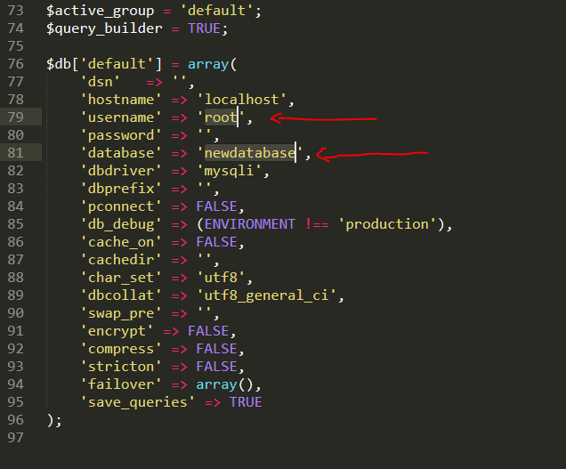 You can change username, password and database details that you created for the project in this file as shown below: